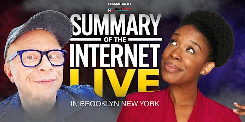 Summary of the Internet LIVE is a rapid-fire night of comics breaking down the stories, trends, and absolute nonsense currently haunting your feed — all in an intimate basement club where the jokes hit faster than your screen time report.
